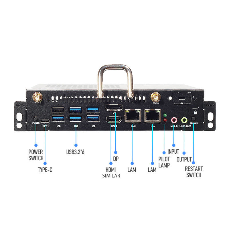 وحدة OPS PC هي جهاز قوي وذكي مجهز بشريحة Intel H81/Q87/B85/H110 ومصدر طاقة 12 فولت DC. يدعم 1 X HD-MI و 1 X VGA،و Realtek ALC662 6-قناة HD الصوت الخروجنطاق درجة الحرارة التشغيلية هو 0 °C ~ 60 °C، وتوفير أداء موثوق به ومستقر. وحدة OPS PC هو الخيار المثالي لمجموعة متنوعة من التطبيقات، مثل الإشارات الرقمية، كيوسك،وأنظمة نقطة البيعإنها مثالية للتطبيقات التجارية والصناعية التي تتطلب أداء حاسوبي قوي، كما أنها توفر قدرة متوسعة ومرونة فائقة.